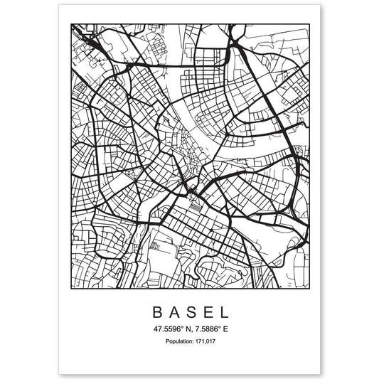 • Lámina mapa de la ciudad Basel estilo nordico en blanco y negro.-Artwork-Nacnic-Nacnic Estudio SL