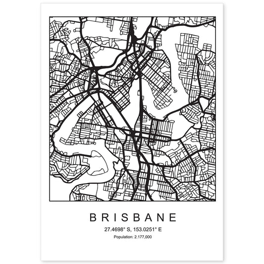 • Lámina mapa de la ciudad Brisbane estilo nordico en blanco y negro.-Artwork-Nacnic-Nacnic Estudio SL