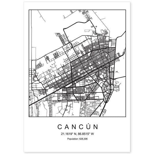 • Lámina mapa de la ciudad Cancun estilo nordico en blanco y negro.-Artwork-Nacnic-Nacnic Estudio SL