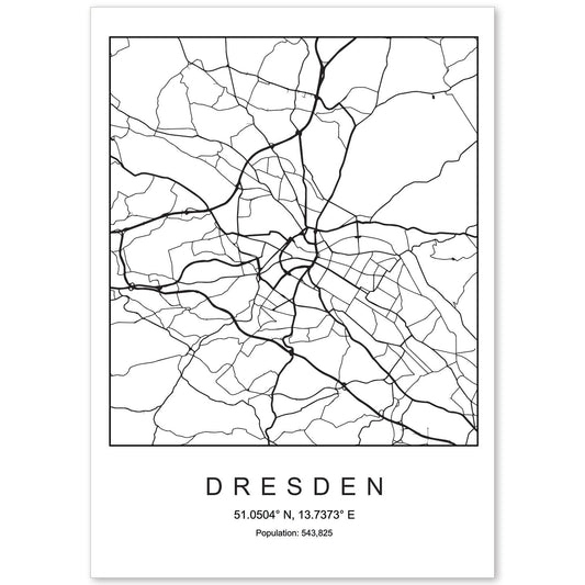 • Lámina mapa de la ciudad Dresden estilo nordico en blanco y negro.-Artwork-Nacnic-Nacnic Estudio SL