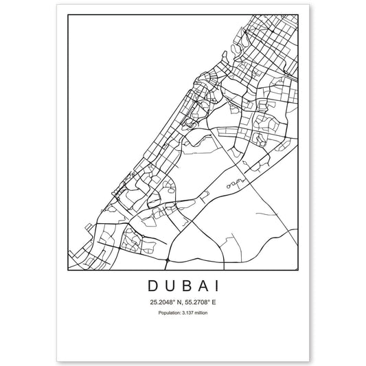 • Lámina mapa de la ciudad Dubai estilo nordico en blanco y negro.-Artwork-Nacnic-Nacnic Estudio SL