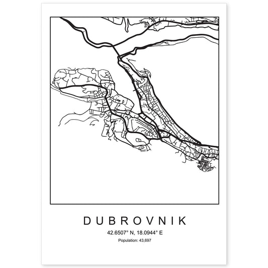 • Lámina mapa de la ciudad Dubrovnik estilo nordico en blanco y negro.-Artwork-Nacnic-Nacnic Estudio SL