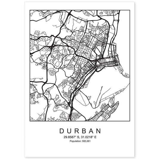 • Lámina mapa de la ciudad Durban estilo nordico en blanco y negro.-Artwork-Nacnic-Nacnic Estudio SL