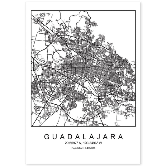 • Lámina mapa de la ciudad Guadalajara estilo nordico en blanco y negro.-Artwork-Nacnic-Nacnic Estudio SL