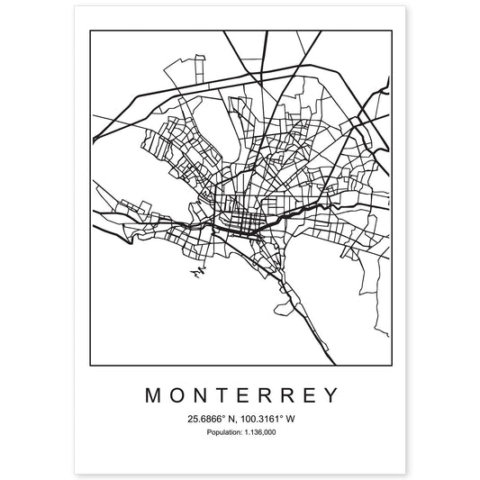 • Lámina mapa de la ciudad Monterrey estilo nordico en blanco y negro.-Artwork-Nacnic-Nacnic Estudio SL