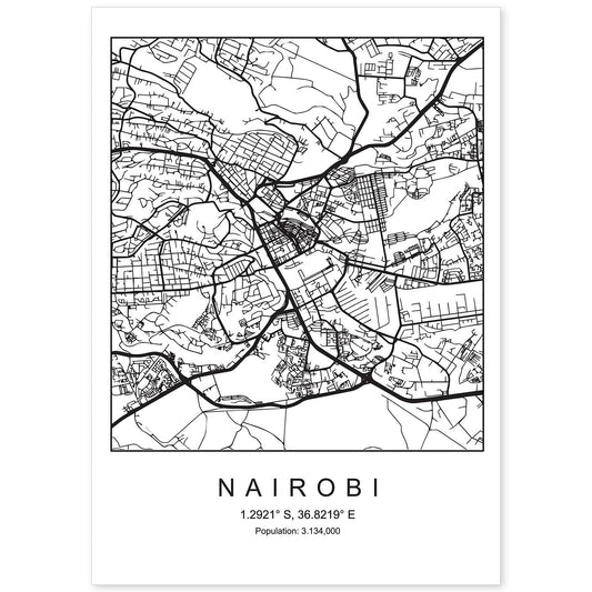 • Lámina mapa de la ciudad Nairobi estilo nordico en blanco y negro.-Artwork-Nacnic-Nacnic Estudio SL