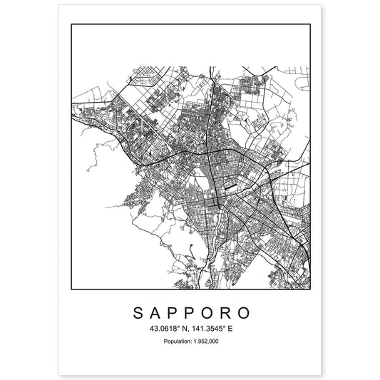 • Lámina mapa de la ciudad Sapporo estilo nordico en blanco y negro.-Artwork-Nacnic-Nacnic Estudio SL