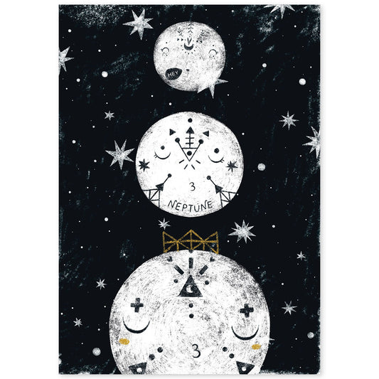 • Lámina Tres planetas Estilo nordico blanco y negro. Composiciones planetarias infantiles-Artwork-Nacnic-Nacnic Estudio SL