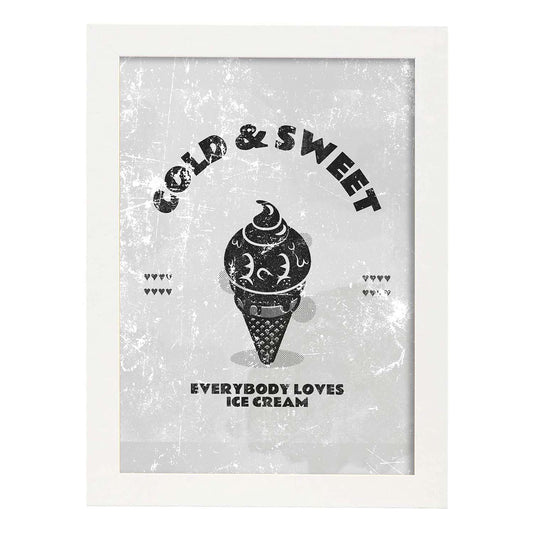 Lámina Helado de Dibujos Retro en Grises