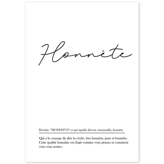 Lámina Honnete con palabras en francés y fondo blanco