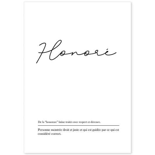 Lámina Honore con palabras en francés y fondo blanco