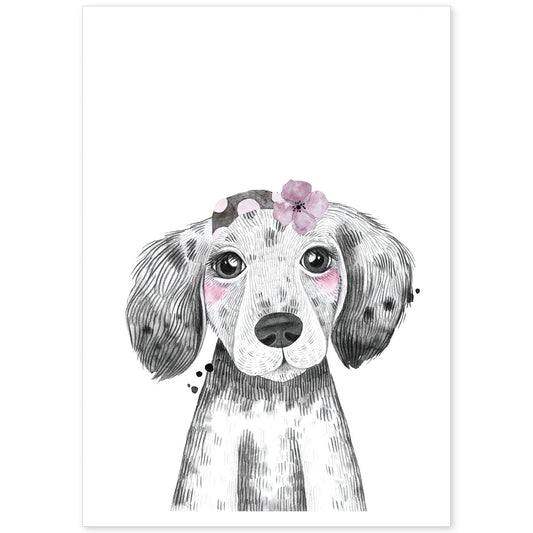 • Lámina infantil Perro bebe con pañuelo y flor Poster animales infantiles-Artwork-Nacnic-Nacnic Estudio SL