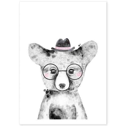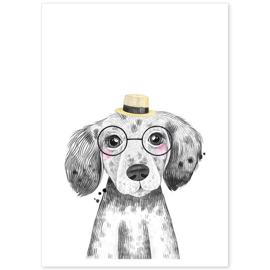 • Lámina infantil Perro bebe con sombrero y gafas Poster animales infantiles-Artwork-Nacnic-Nacnic Estudio SL