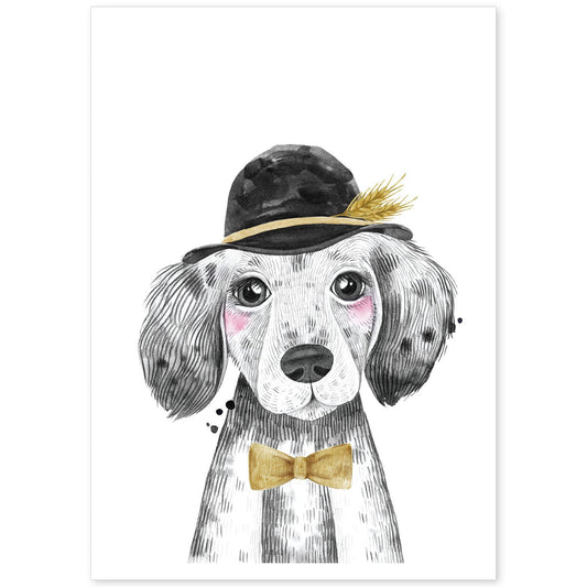 • Lámina infantil Perro bebe con sombrero y pajarita poster animales infantiles-Artwork-Nacnic-Nacnic Estudio SL
