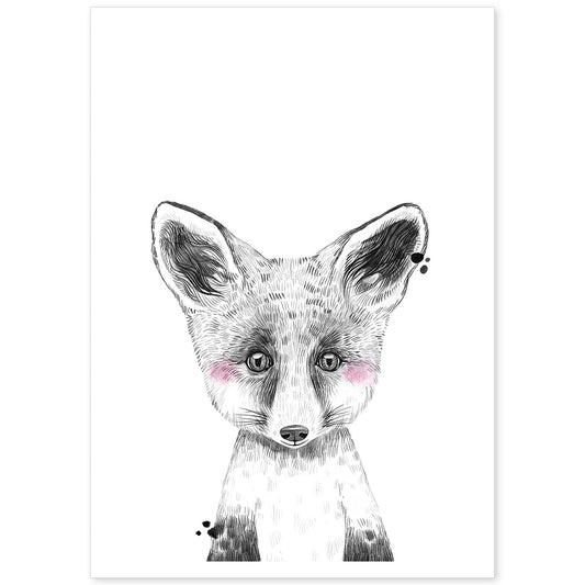 • Lámina infantil Zorro infantil blanco y negro poster de animales infantiles-Artwork-Nacnic-Nacnic Estudio SL