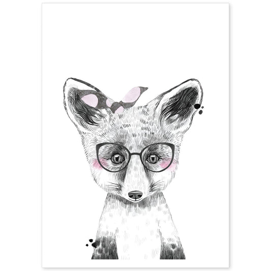 • Lámina infantil Zorro infantil con gafas y pañuelo rosa poster animales infantiles-Artwork-Nacnic-Nacnic Estudio SL