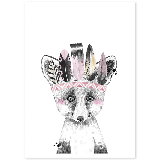 • Lámina infantil Zorro infantil con plumas en la cabeza poster de animales infantiles-Artwork-Nacnic-Nacnic Estudio SL
