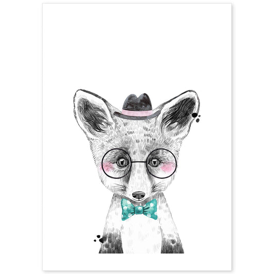 • Lámina infantil Zorro infantil con sombrero gafas y pajarita poster animales infantiles-Artwork-Nacnic-Nacnic Estudio SL