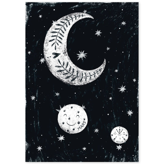Lámina Infantil Estilo Nórdico de Luna y Planetas