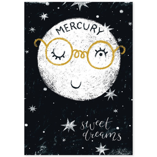 Lámina Infantil Estilo Nórdico Mercurio Blanco y Negro