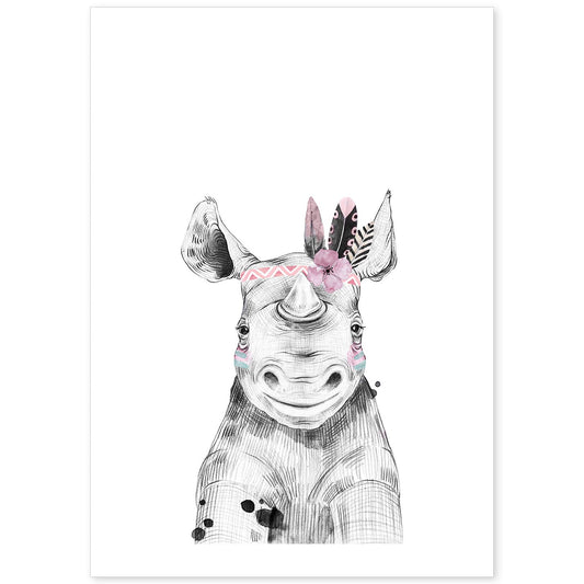 • Lámina Rinoceronte infantil con plumas en la cabeza poster animales infantiles-Artwork-Nacnic-Nacnic Estudio SL