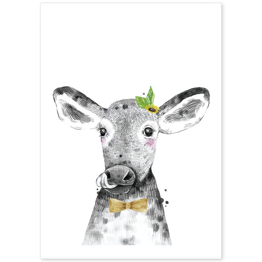 • Lámina Vaca infantil con pajarita poster animales infantiles-Artwork-Nacnic-Nacnic Estudio SL