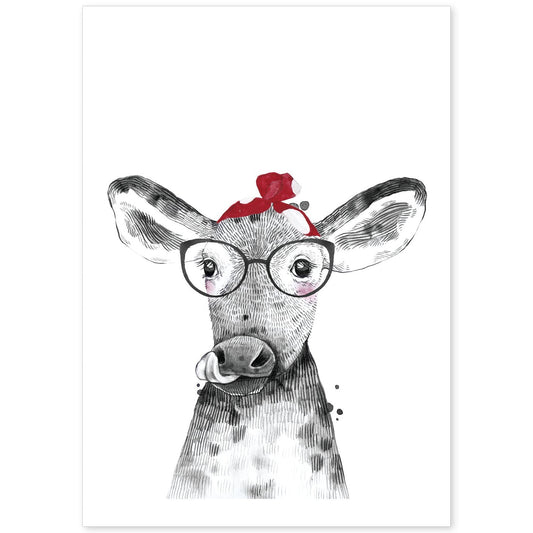• Lámina Vaca infantil con pañuelo poster animales infantiles-Artwork-Nacnic-Nacnic Estudio SL