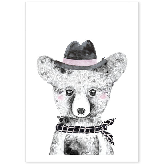 Lámina Infantil Oso Bebé con Sombrero y Pañuelo