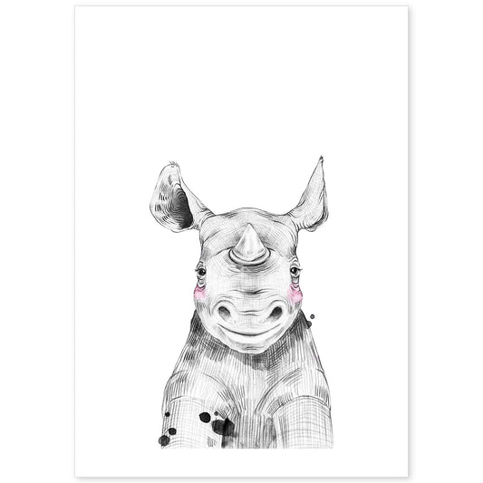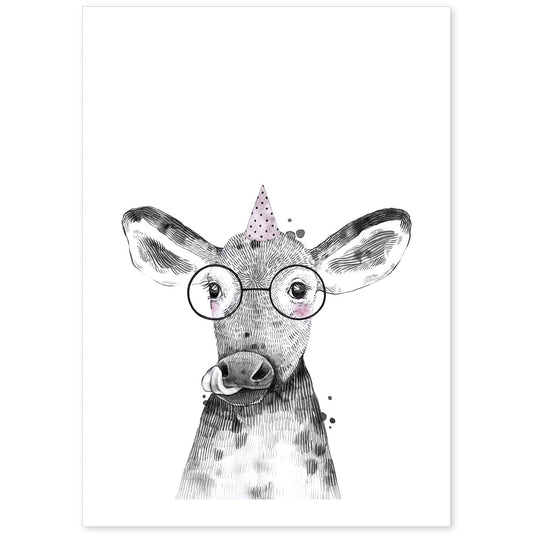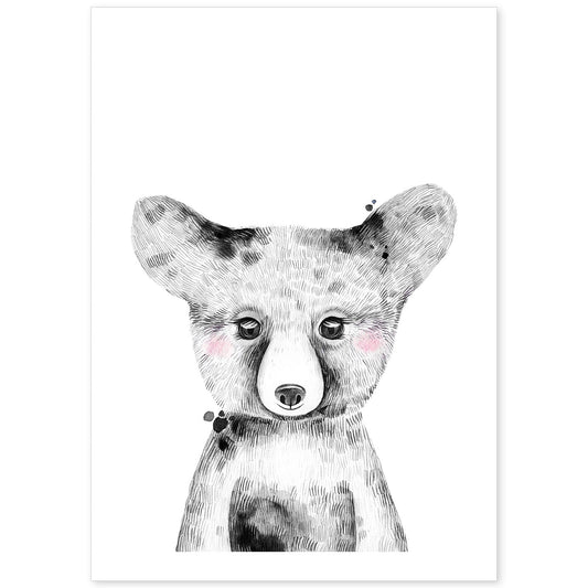 Lámina Infantil Oso Bebé con Pañuelo Gris y Rosa