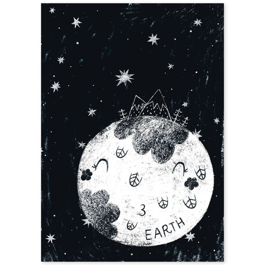 Lámina Infantil Tierra Estilo Nórdico Blanco y Negro