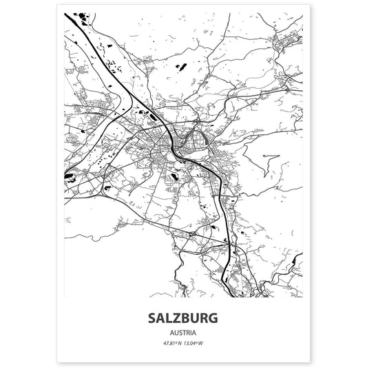 Lámina Mapa de Salzburg - Austria en Color Negro