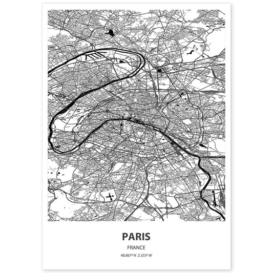 Lámina Mapa de Paris en Color Negro