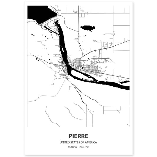Lámina Mapa de Pierre - USA en Color Negro