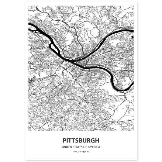 Lámina Mapa de Pittsburgh - USA en Negro
