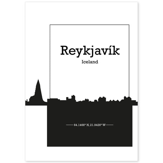 Lámina Mapa de Reykjavik - Islandia con Skyline y Sombra Negra