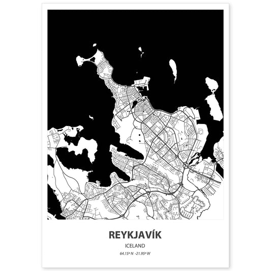Lámina Mapa de Reykjavik - Islandia en Color Negro
