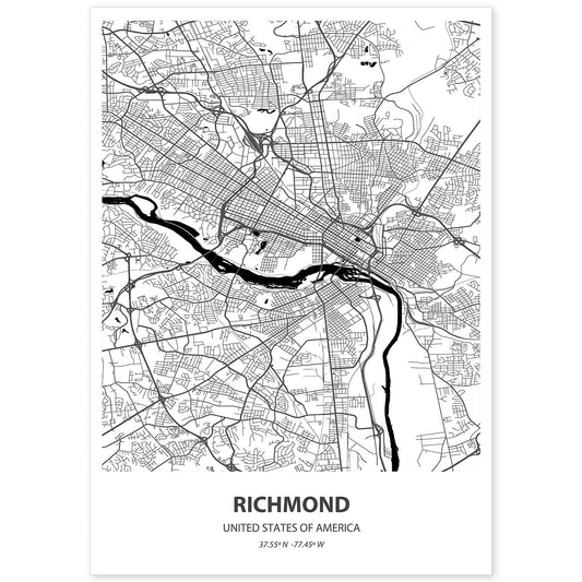 Lámina Mapa de Richmond - USA en Negro