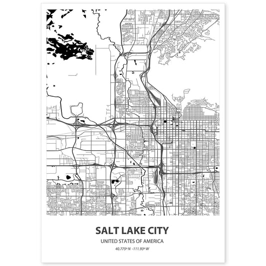 Lámina mapa de Salt Lake City - USA en color negro