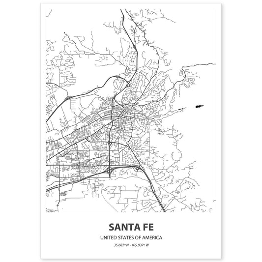 Lámina Mapa de Santa Fe en Color Negro