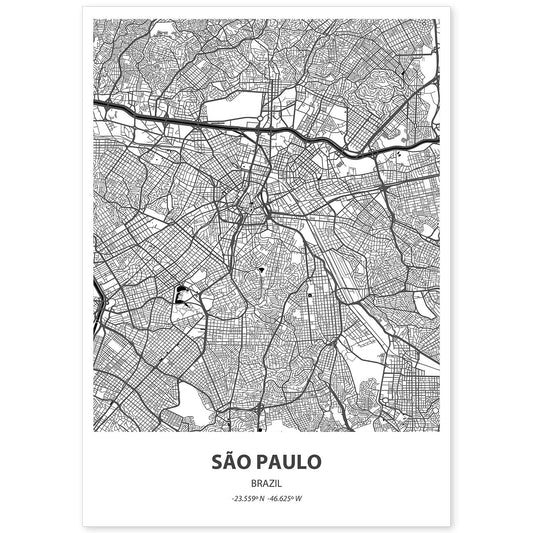 Lámina Mapa de Sao Paulo en Color Negro
