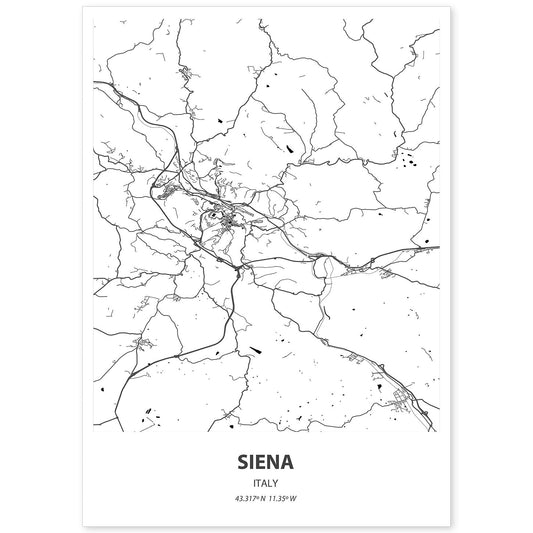 Lámina Mapa de Siena, Italia en Color Negro