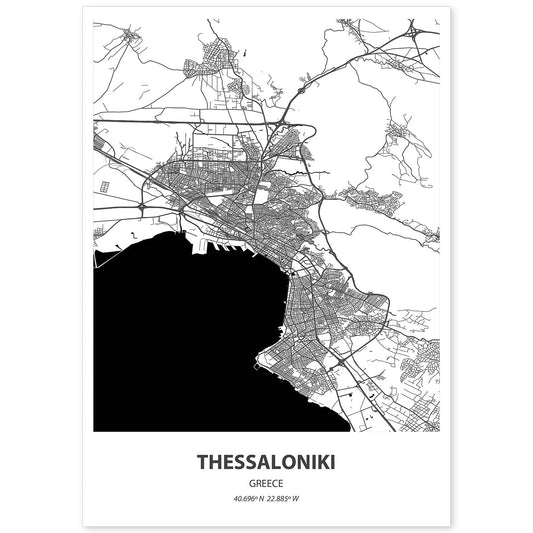 Lámina Mapa de Thessaloniki en Negro