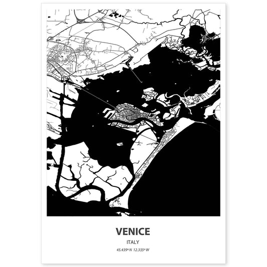 Lámina Mapa de Venice, Italia en Negro