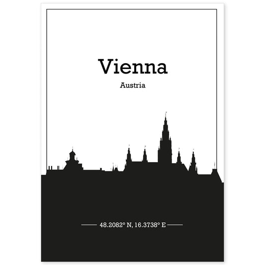 Lámina Mapa de Vienna con Skyline en Sombra Negra