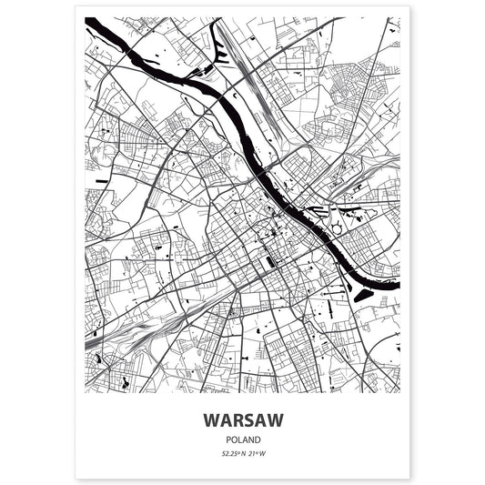 Lámina Mapa de Warsaw Polonia en Color Negro