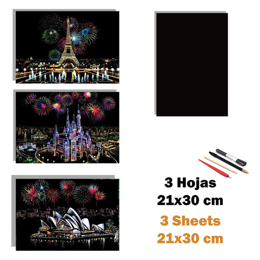 Láminas para Rascar de Fuegos Artificiales Serie Ciudades