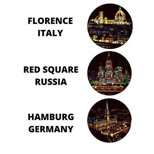 Láminas para Rascar de Ciudades: Rusia Plaza Roja, Florencia, Hamburgo - Scratch Painting