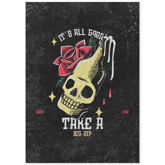 Lámina estilo tatuaje Dale un trago en fondo oscuro