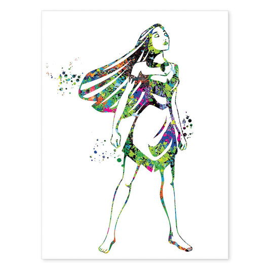 Poster Acuarela de Pocahontas y Películas Antiguas