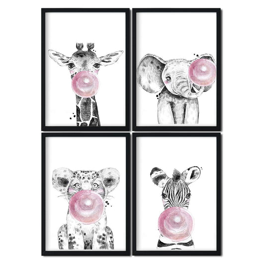 Set de 4 láminas de Animales Infantiles con Chicle Rosa